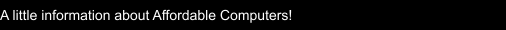 Affordable Computers was founded in 2003 by Roy Pope (my father). Currently it is owned and operated by Andy Pope (me). If you happen to stop in and I'm not there, you will likely encounter our technician (Kory).